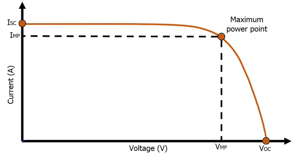 - VMP (Voltage at Maximum Power): ولتاژ پنل در نقطهای که بیشترین توان را تولید میکند. این ولتاژ کاری واقعی پنل است و همیشه از VOC کمتر است.